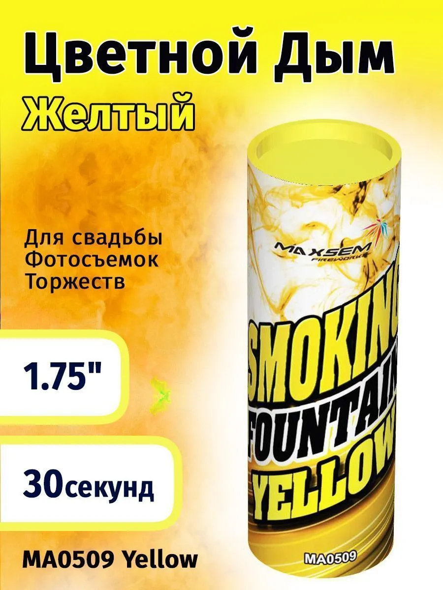 Дым желтый 1,75" 30сек. h-115мм. Можно держать в руках