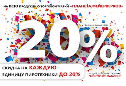 Переходите на страницу подборки и выбирайте любимую пиротехнику со скидкой до 20%.