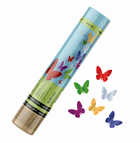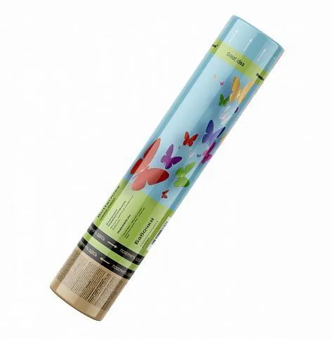 Хлопушка пневматическая 30см. Наполнение: конфетти-прямоугольники и конфетти-бабочки из фольги Цвет: разноцветный